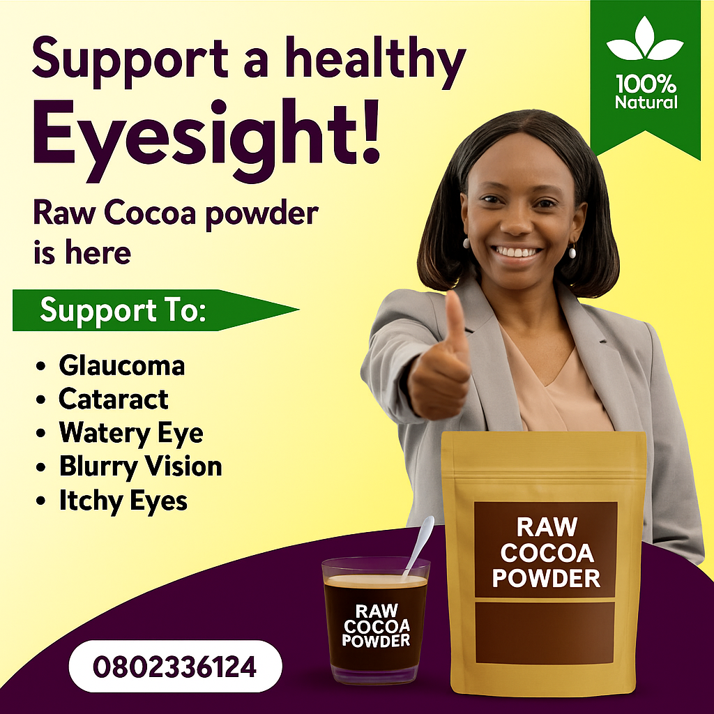 Cocoa has proven to be the best treatment for the eyes, as it works from the heart and not from the eyes itself. It cleanses your heart, and once your heart is clean, it will enhance your overall performance, which includes your: